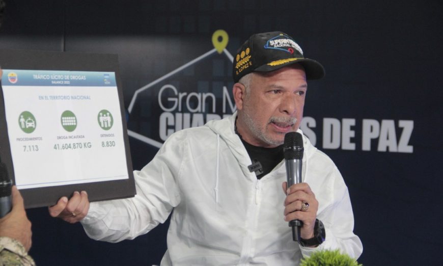 El Superintendente Nacional Antidrogas MG Richard López Vargas informó los detalles del balance antidrogas de Venezuela para este año 2022, en el cual destaca la incautación de 41.604 kilogramos de drogas y la detención de 8.830 personas incursas en delitos de tráfico ilícito.